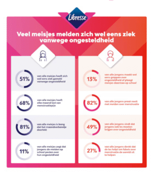 - 12% blijft thuis vanwege angst voor pesten bij menstruatie.